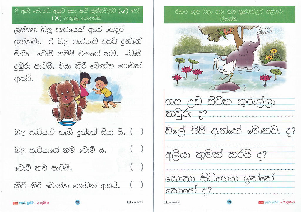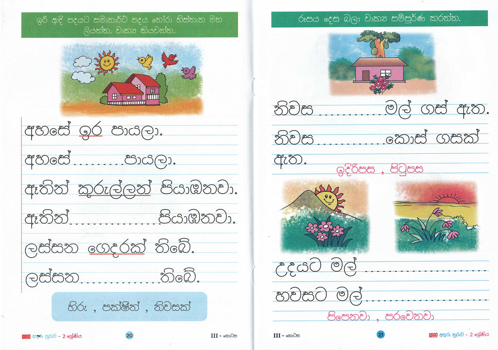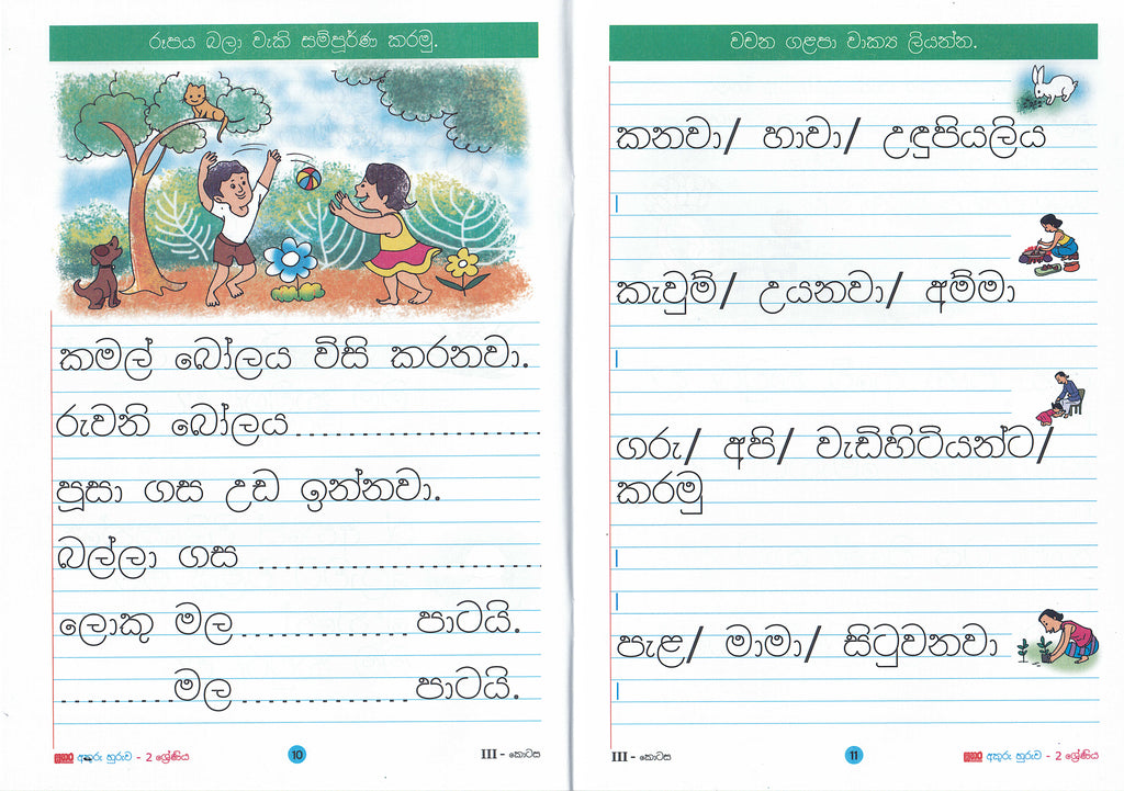 වාක්යය නිර්මාණය කිරීම හා වාක්යය නිවැරදිව තනිරූල මත ලිවීම හුරු කරවීම