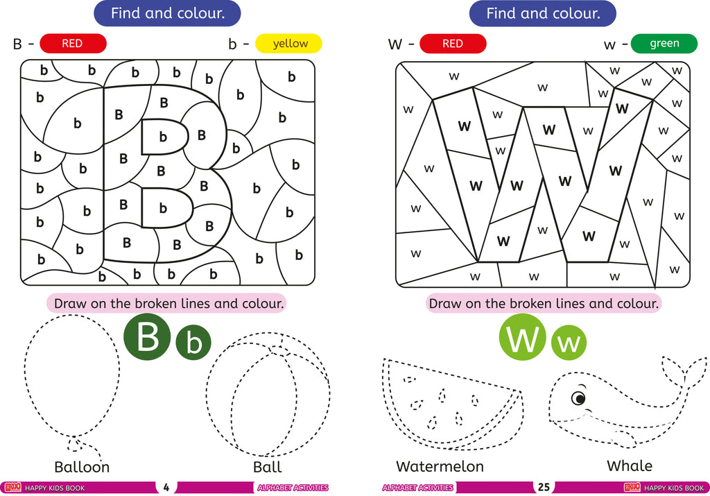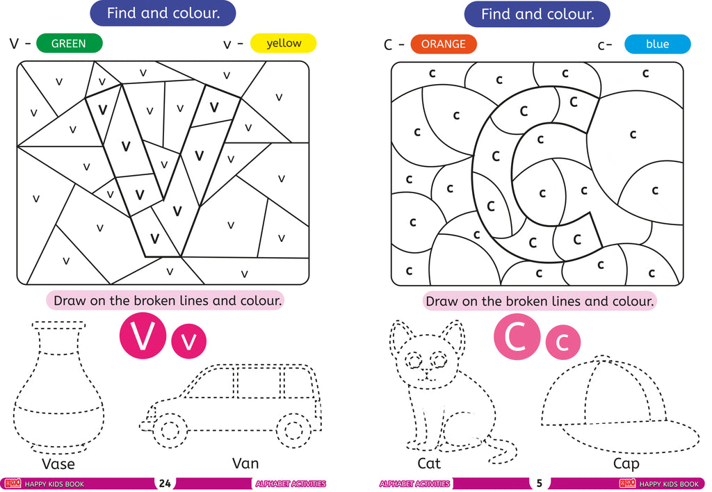 අකුරු, හැඩතල, වර්ණ, හඳුනා ගැනීම් ආශ්රිත ක්රියාකාරකම් ඇතුළත් එකිනෙකට වෙනස් වැඩපොත්